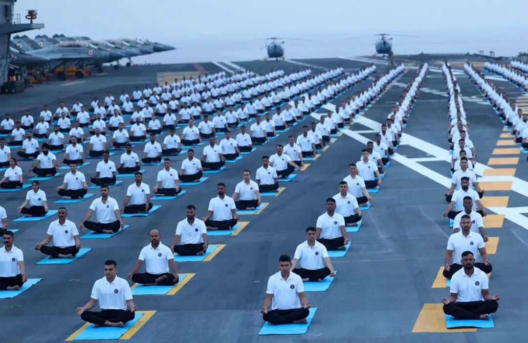 他最近去视察了印度国产航母,还发布了印度士兵在航母上集体练瑜伽的照片,就是一句话没提特朗普。
